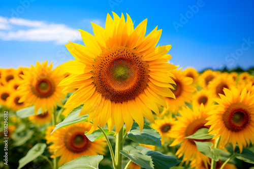 Fototapeta premium 【 AI Digital Art 】 Close up of Sunflowers, Blue Sky and Sunflowers
