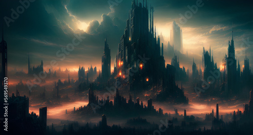 © Oblivion VC, Fototapeta premium AI Digital Illustration Post Apocalyptic Cityscape