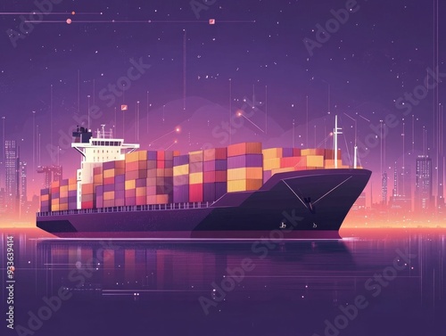 © Digital Artistry Den, Obraz premium AI Driven Logistics Optimization Streamlining Shipping Routes for Efficient Deliveries through Data Analysis Network Planning and Flat Design