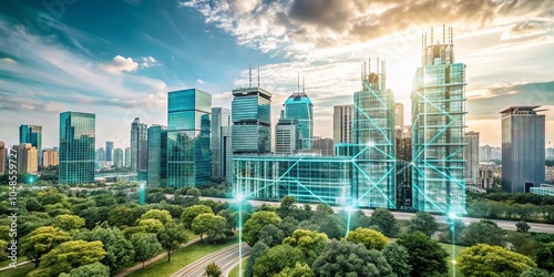 Fototapeta premium AI-Driven Urban Planning Model in Neon Blue Visualizing Optimized City...
