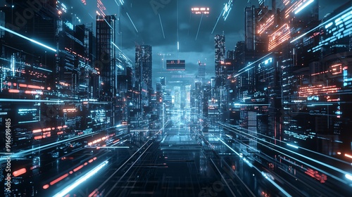 Fototapeta premium AI-driven world, advanced infrastructure, futuristic cityscape, digital networks