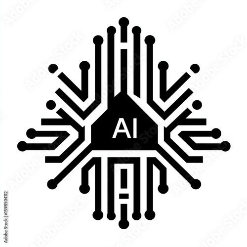 © pramod, Obraz premium AI engineer logo, mimimal, 2d vector design, black and white.