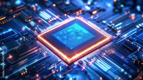 © Futureaz, Fototapeta premium AI-enhanced Deep Learning Processor with Electric Pulsations