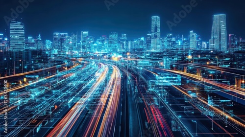 © Futureaz, Obraz premium AI-enhanced Smart City with Interconnected Transport