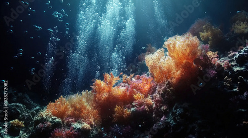 Obraz premium AI-enhanced underwater world, with data streams illuminating sea creatures