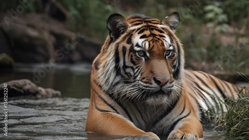 © MR HEPPY, Naklejka premium AI GENERATE, A tiger with the nature life background