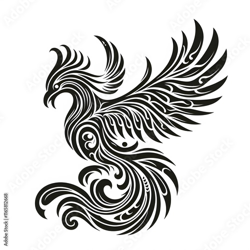 Fototapeta premium AI Generate of Phoenix Shape in Maori Art style isolated in white