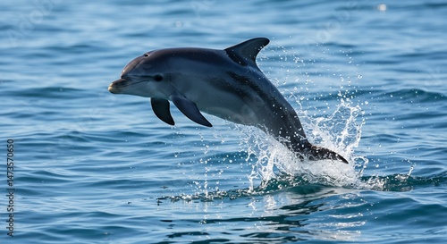 Fototapeta premium 大海原を軽やかに跳躍するイルカ 躍動感あふれる瞬間. AI Generated
