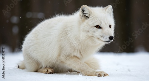 © Do, Obraz premium 雪景色 凛と座る白い狐 優しい光. AI Generated