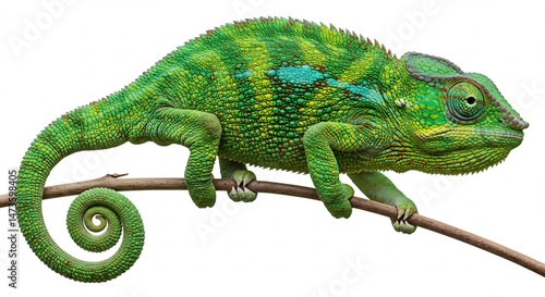 © Do, Obraz premium 鮮やか緑色のカメレオン 枝の上優雅に佇む. AI Generated