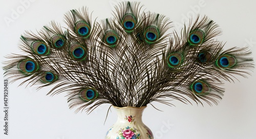 © Tran, Obraz premium 孔雀の羽根 華麗なる装飾 優美な光沢 白背景. AI Generated