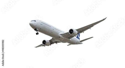 © Tran, Obraz premium 白い旅客機 滑らかに着陸準備 青空背景. AI Generated