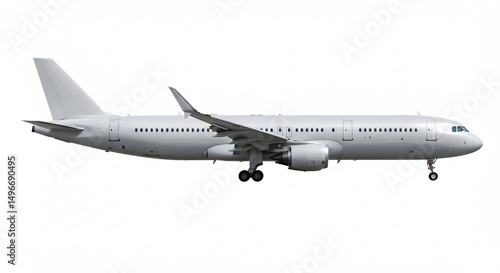 Obraz premium 白い旅客機、滑走路を静かに待つ。完璧なシルエット、明るい背景で際立つ。. AI Generated
