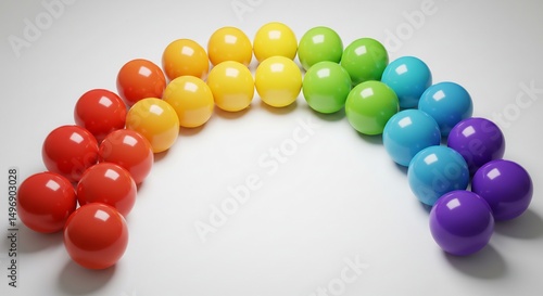 Obraz premium 虹色ボール カラフルに輝く 球体 並ぶ 光沢感. AI Generated