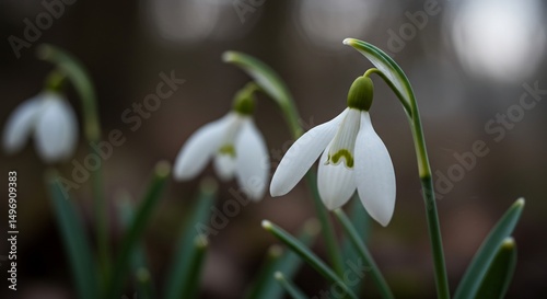 © Tanaka, Fototapeta premium 春の柔らかな光を浴びる清楚な雪割草. AI Generated