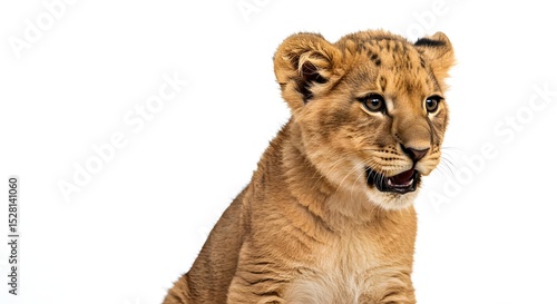 Fototapeta premium 愛らしいライオンの子、柔らかな光の中で微笑む. AI Generated