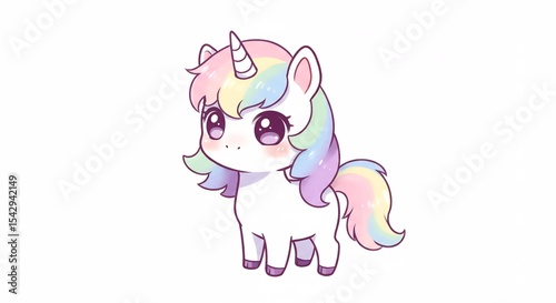 © Tran, Obraz premium 虹色たてがみ可愛いユニコーン 優しいパステル調イラスト. AI Generated