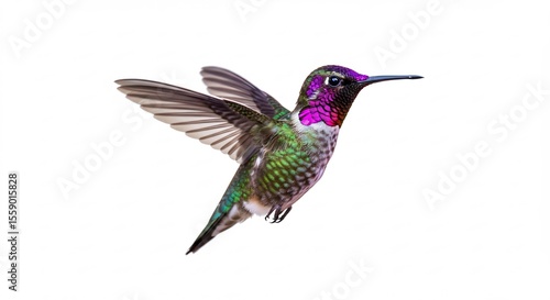 Fototapeta premium 鮮やか羽根輝くハチドリ 優雅に空中舞う 自然光鮮明. AI Generated