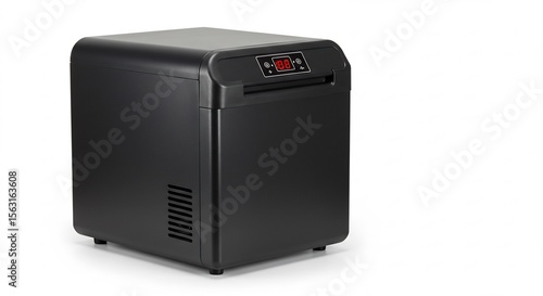 Fototapeta premium スタイリッシュな黒小型冷蔵庫 シンプルデザイン 省スペース. AI Generated