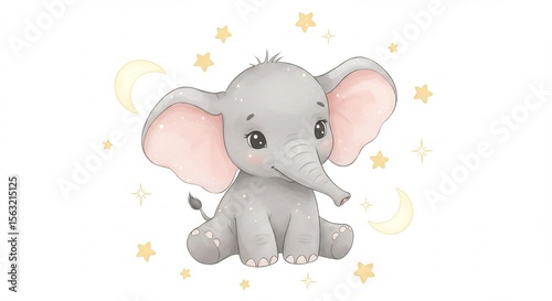 © Nakamura, Naklejka premium 優しい光輝く子象 水彩画風 星月夜. AI Generated