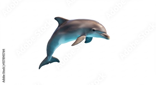 © Tran, Obraz premium 躍動感溢れるイルカ 水中光輝く白背景. AI Generated