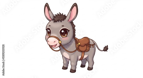 Obraz premium 愛らしい子ロバ 優しい光浴びて微笑む 可愛いイラスト. AI Generated