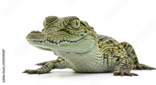 © Do, Obraz premium 可愛いワニの赤ちゃん 白背景 鮮やか緑色 穏やか表情. AI Generated