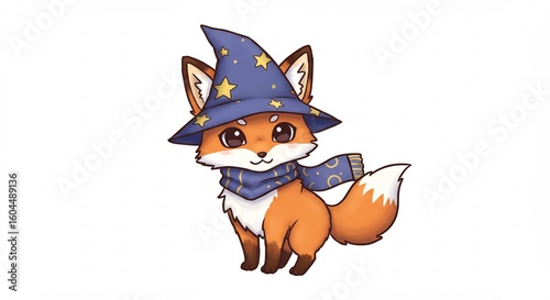 © Nakamura, Obraz premium 魔法使いキツネ 優しい瞳 星屑帽子 可愛く微笑む. AI Generated