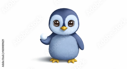 Fototapeta premium 愛らしいペンギン 雪玉抱きしめる 優しい光. AI Generated