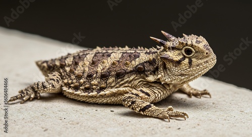 © hitomi, Fototapeta premium 鋭い棘 美しい模様 砂漠のトカゲ 鮮明な影で浮かび上がる. AI Generated