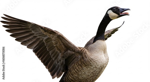 Obraz premium 力強く羽ばたくカナダガン 白背景 鮮明な写真. AI Generated
