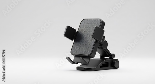 Naklejka premium シンプルデザイン 黒スマホスタンド 安定感抜群 滑らかな質感 使いやすい. AI Generated
