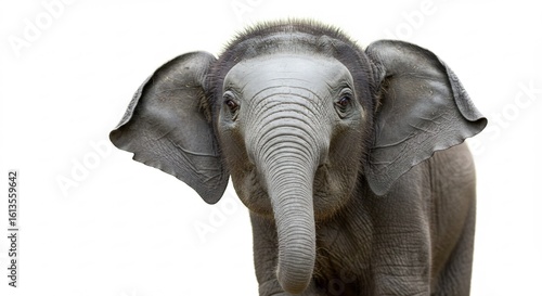 © hitomi, Naklejka premium 愛らしい象の子 白背景で輝く瞳 穏やかな表情. AI Generated