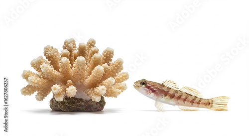© Rio, Obraz premium 白い背景 鮮やか珊瑚礁 小さな魚観察 静止画. AI Generated