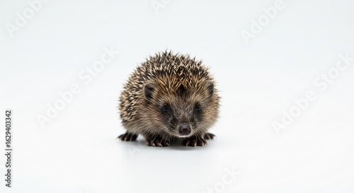 Obraz premium 小さなハリネズミ 白い背景 柔らかな光で輝く毛並 愛らしい姿. AI Generated
