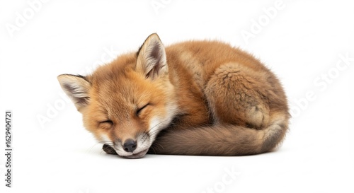 © Nakamura, Fototapeta premium 愛らしい狐の子 穏やかで柔らかな光に包まれて眠る. AI Generated