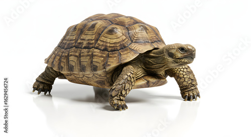 © Tran, Fototapeta premium ゆっくり歩く亀 白背景 スタジオ撮影 自然光. AI Generated