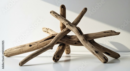 © Tran, Obraz premium 白く輝く光射す漂流木彫刻 自然な質感. AI Generated