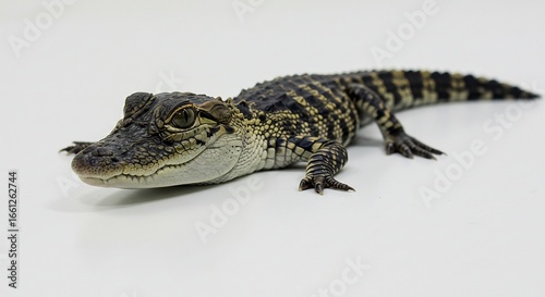 Naklejka premium 子ワニ 白背景 優しい光 包まれた 小さな体. AI Generated