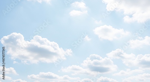 © Tanaka, Fototapeta premium 晴れ渡る空 綿菓子のような雲が優しく漂う 爽やかな青空写真. AI Generated