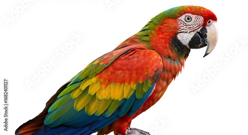 Naklejka premium 鮮やか羽根 鮮明 赤いオウム 白背景 美しい写真. AI Generated