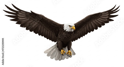 Naklejka premium 力強く羽ばたくワシ 白い背景に鮮明. AI Generated