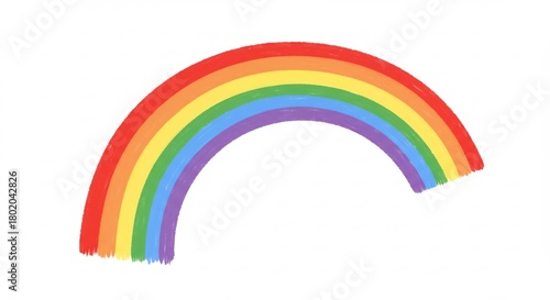 © Rio, Obraz premium 明るい白背景に浮かぶ鮮やかな七色の虹シンプルな線で描かれた希望と喜びのシンボル. AI Generated