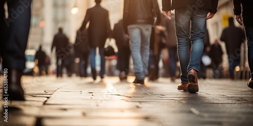 Naklejka premium AI Generated. AI Generative. Crowd people walking street legs in shoes. City...