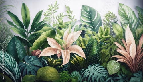© Liam, Fototapeta premium ai generated ai generative notanical herbal exotic tropical plants herbs flowers botanical foliage background nature jungle lanfscape graphic art