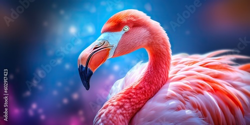 © AkimD, Obraz premium AI Generated. AI Generative. Pink color cute flamingo bird. Vacation rest party vibe.Graphic Art