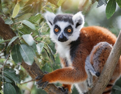 © McPHOTO/imageBROKER, Obraz premium AI generated, animal, animals, mammal, mammals, biotope, habitat, one, individual, ring-tailed lemur (Lemur catta), primates, prosimians, foraging, wildlife, Madagascar island, wet-nosed primates, Africa, East Africa
