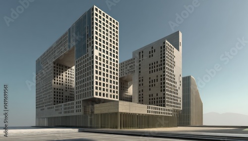 Fototapeta premium AI-generated design of a building with a grid-patterned facade reflecting modern architecture.