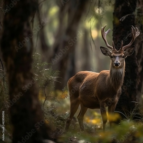 Naklejka premium AI generated illustration of a graceful antelope standing in a lush, green forest