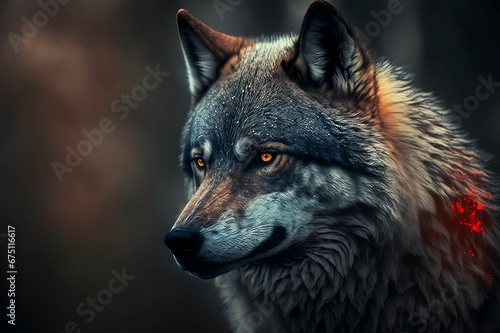 © Wirestock, Obraz premium AI-generated illustration of a head of wolf with light blurred background